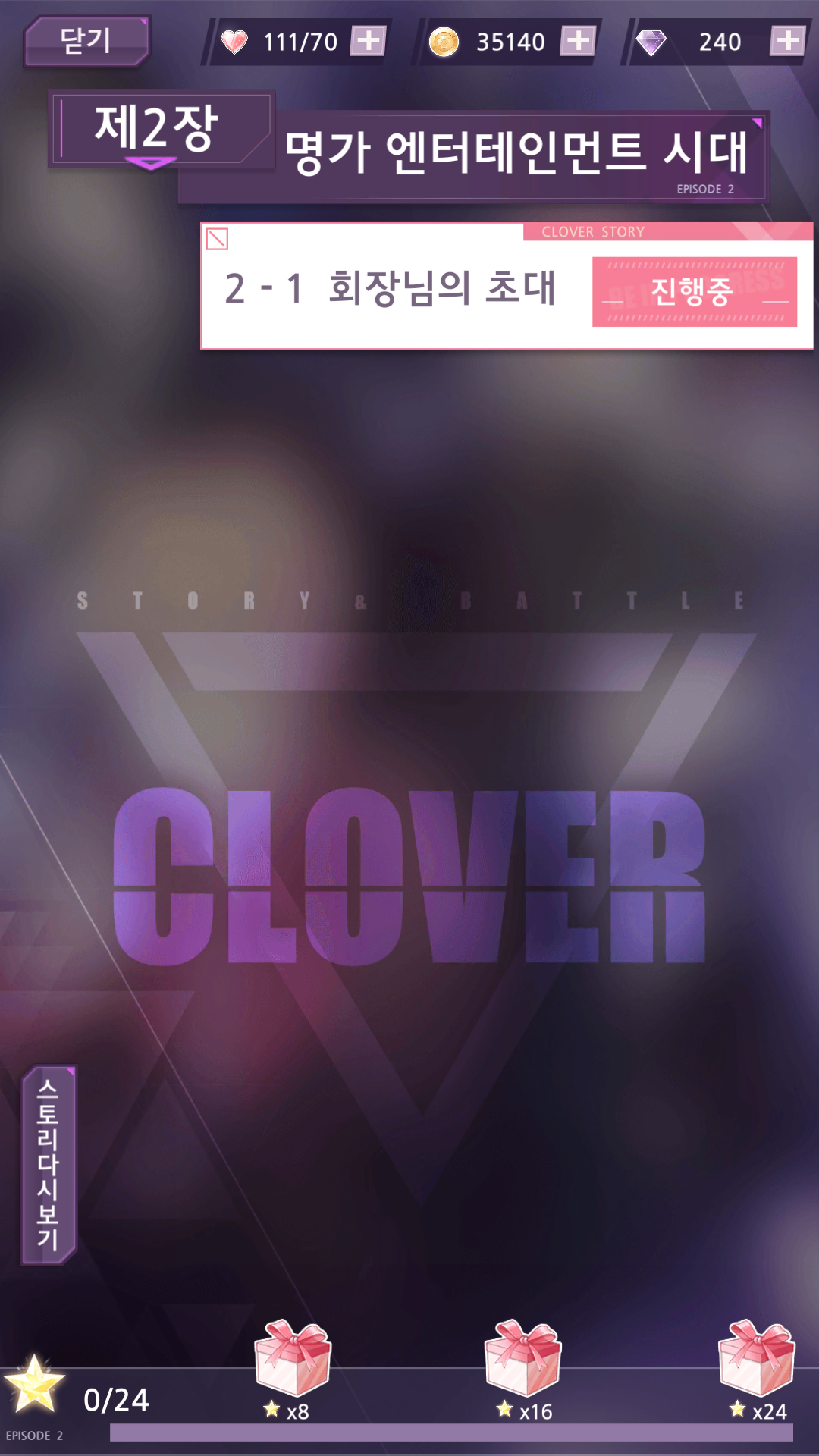 스타와 호감도도 쌓아서 스타별 스토리도 볼 수 있더군요.