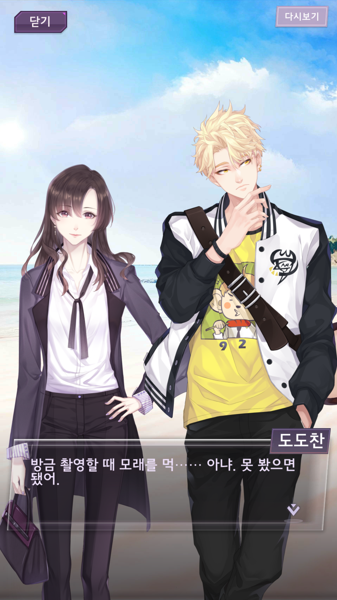 도도찬: 방금 촬영할 때 모래를 먹······ 아냐. 못 봤으면 됐어.