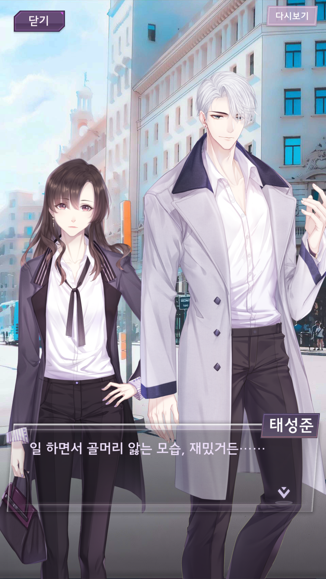 태성준: 그럭저럭. 하지만 하이힐 신고는 걷기 어려워 보이는데. 손 줘.