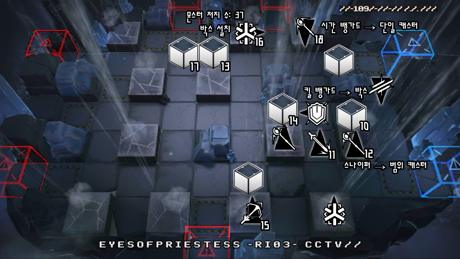 다만 계속해서 해당 자리에 생성하여 발을 묶을 수 있어야 하므로 재배치 시간이 줄어드는 스페셜리스트(예: 레드, 그라벨)이나 저코스트 오퍼레이터들(예: 플룸, 팽)로 최대한 오랫동안 제일 데미지를 많이 넣을 수 있는 타일에 묶어둡니다.