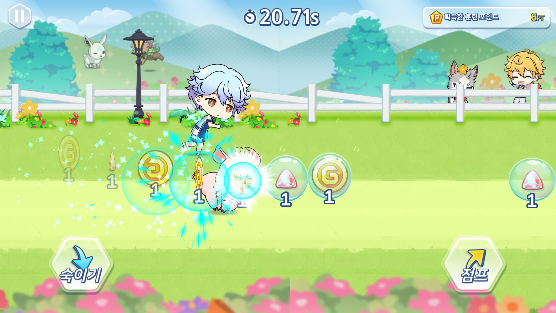 해당 미니게임은 쿠키런같이 점프나 슬라이딩으로 장애물을 피하는 게임입니다.
