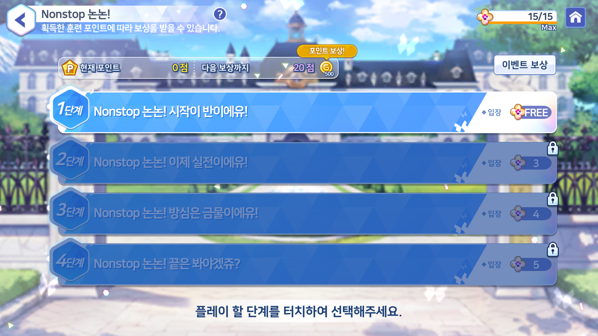 포인트 보상을 통해 이벤트 스토리, 젬, 성장 아이템 등등도 얻을 수 있어 구성이 풍성(?)합니다.